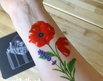 5 Tattoos Poppy And Lavender 4 Inches Etsy Finland
